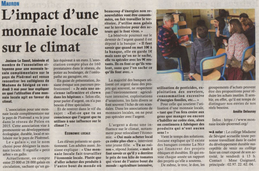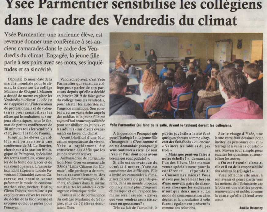 Le collège Madame-De-Sévigné accueille les vendredis à 13h, toute personne travaillant dans le cadre du développement durable susceptible de venir au collège faire un court exposé de son activité.