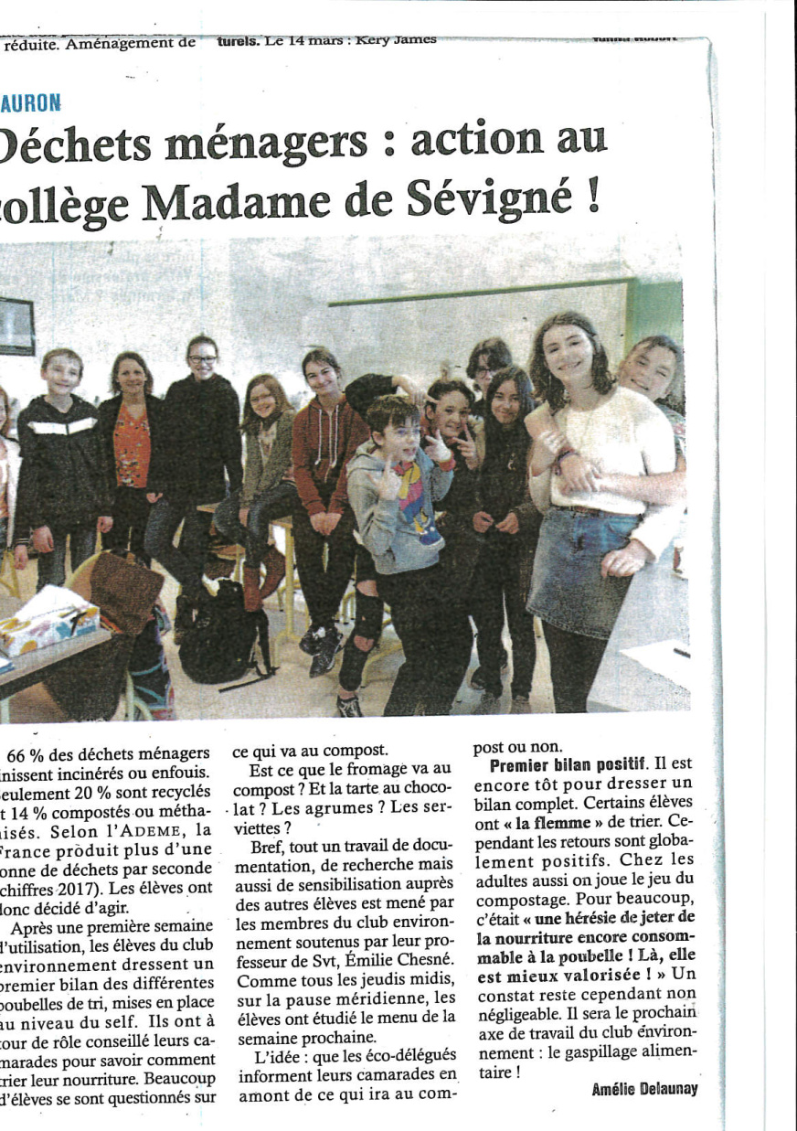- Club développement durable. Le collège s’engage pour l’écologie