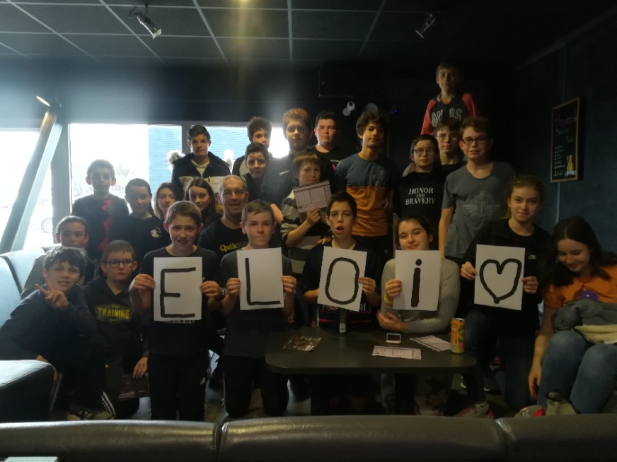 Tous les élèves ayant participés à la dernière sortie AS au Space Laser se sont montrés Unis et ont pensé à Éloi, un camarade blessé lors de la sortie badminton précédente.