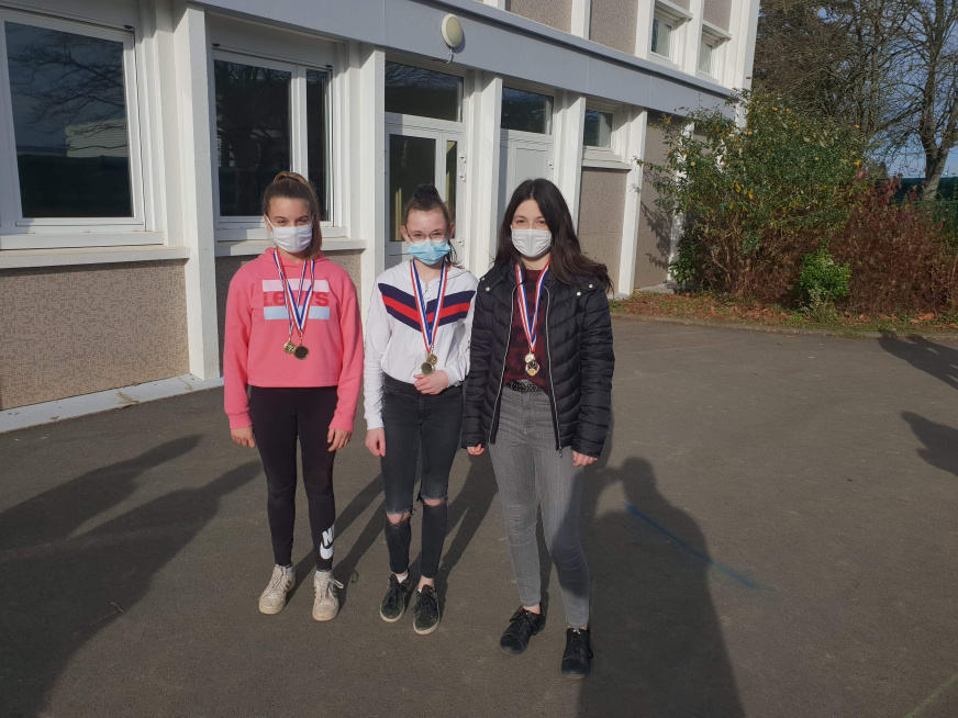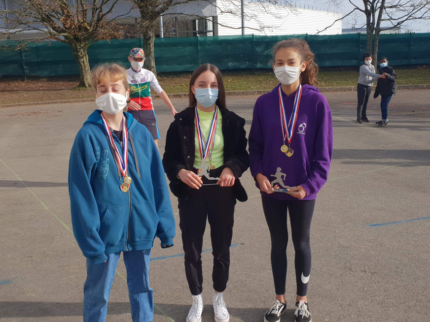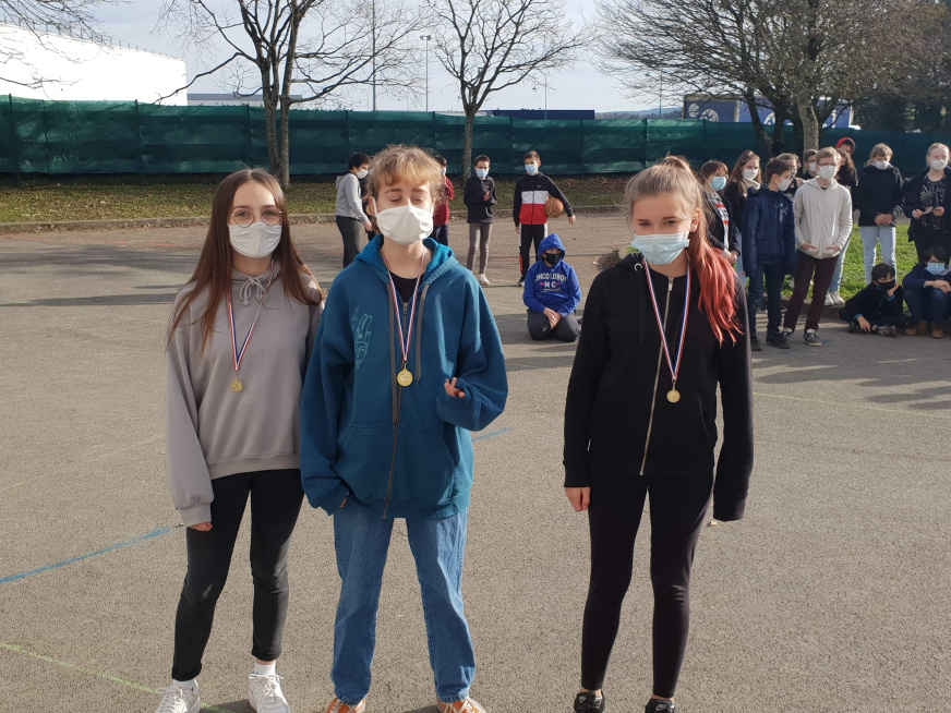 Voici les résultats : en 6e fille, 1re Savanah Posnic, 2e Emma Dousset et 3e Mewenn Charles