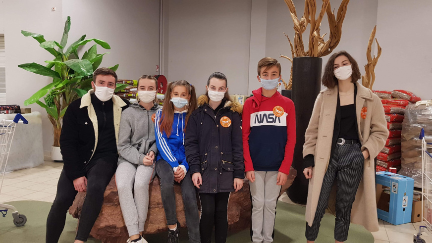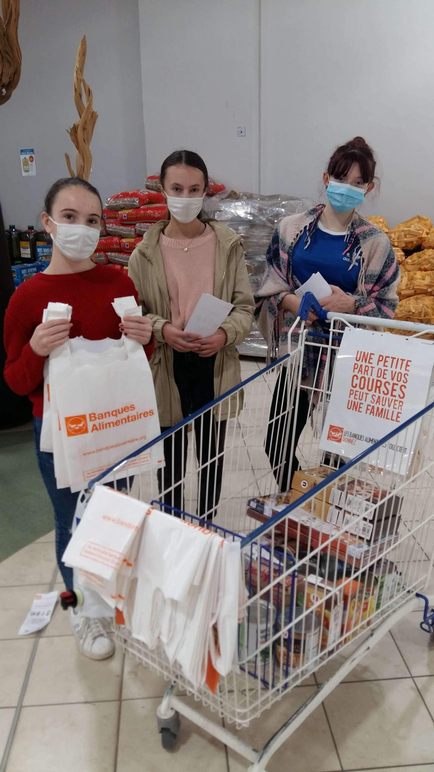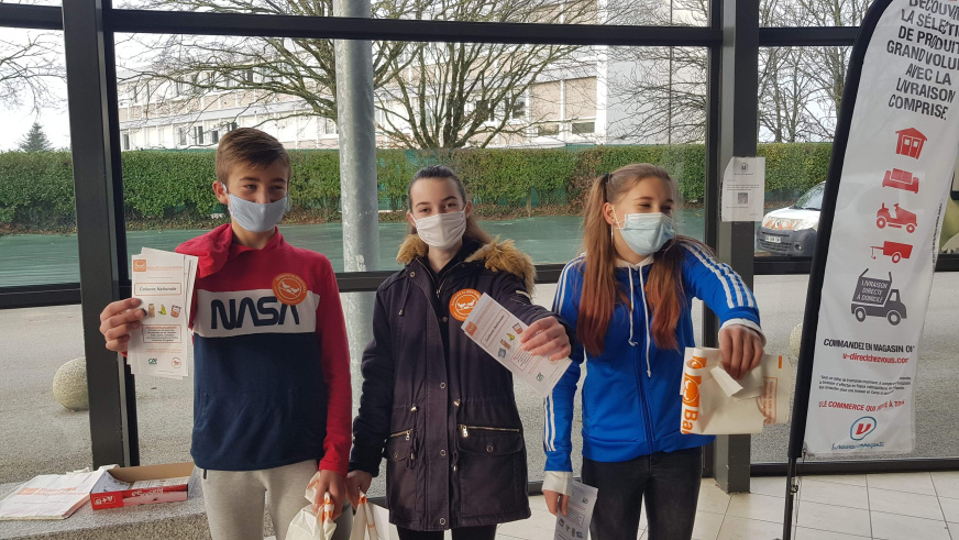 Le vendredi 27 novembre 2020, quinze élèves de 4e du collège Mme de Sévigné se sont rendus au magasin Super U de Mauron afin de participer à la collecte de la Banque Alimentaire auprès de bénévoles locaux.