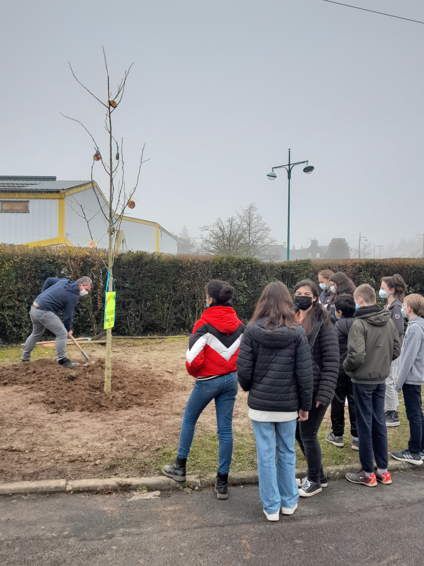 Nos élèves ont donc fêté son arrivée au collège le mardi 14 décembre dernier, en le décorant et en aidant à sa plantation.