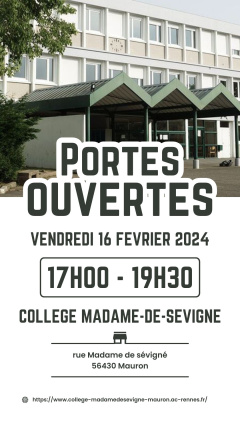 Portes ouvertes du collège le vendredi 16 février 2024 de 17h à 19h30.