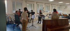Les instruments de musique d’un bagad coûtant cher, les élèves s’entraînent, dans un premier temps, à l’aide d’un practice et des instruments mis à disposition par le collège.