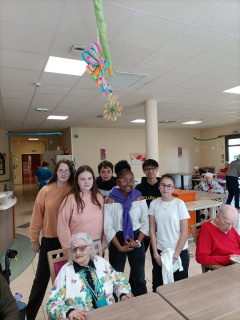 Rencontre intergénérationnelle à l’ EHPAD, Résidence Virginie Danion, autour de la poésie. Les élèves ont récité les poèmes appris en cours de français. Puis les résidents ont partagé leurs souvenirs de poèmes « le Corbeau et le Renard », « la Cigale et le Fourmi ». Les résidents avaient confectionné un gâteau aux pommes pour partager un goûter. Rendez-vous en juin pour un après-midi « jeux de société ».