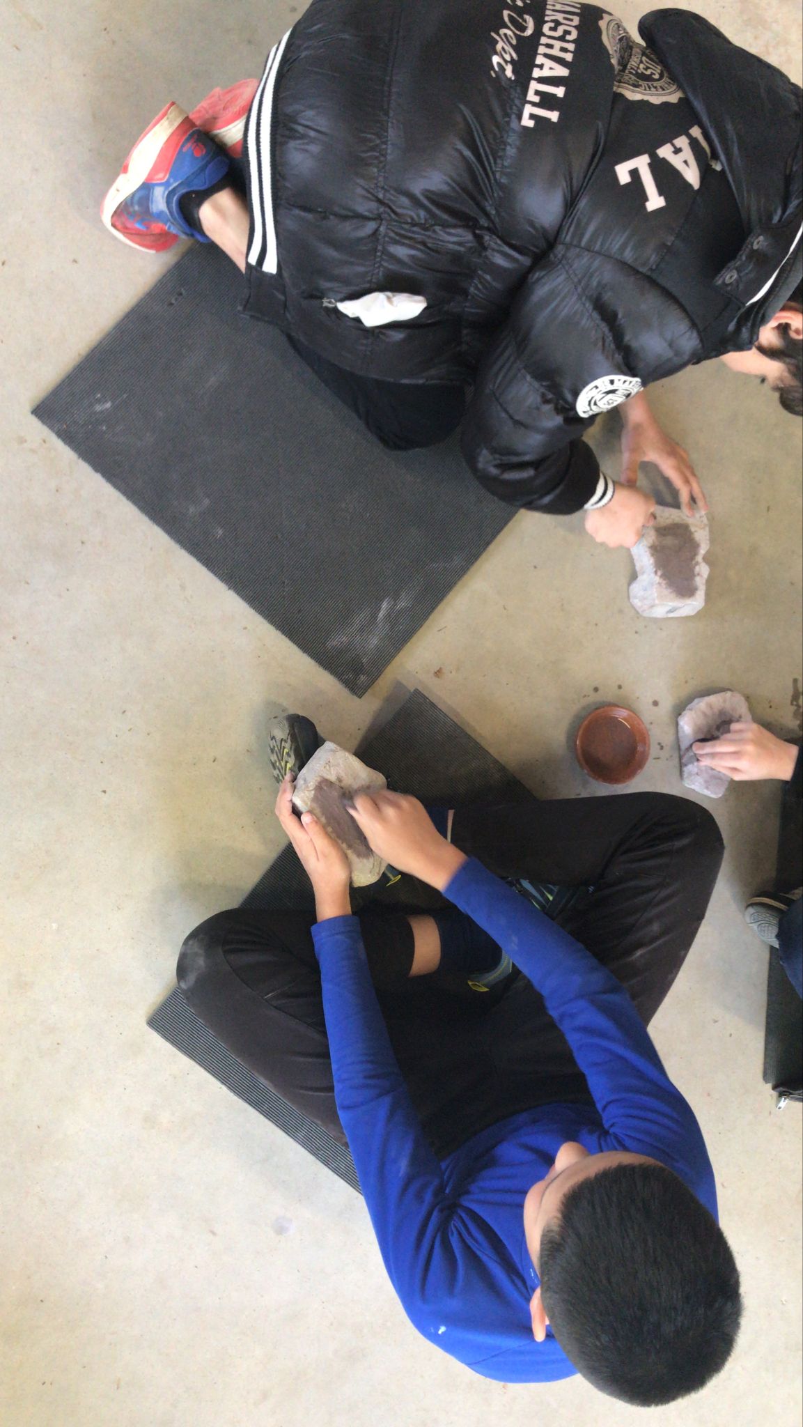 * Création d’un pendentif avec une pierre de schiste à l’aide d’un polissoir