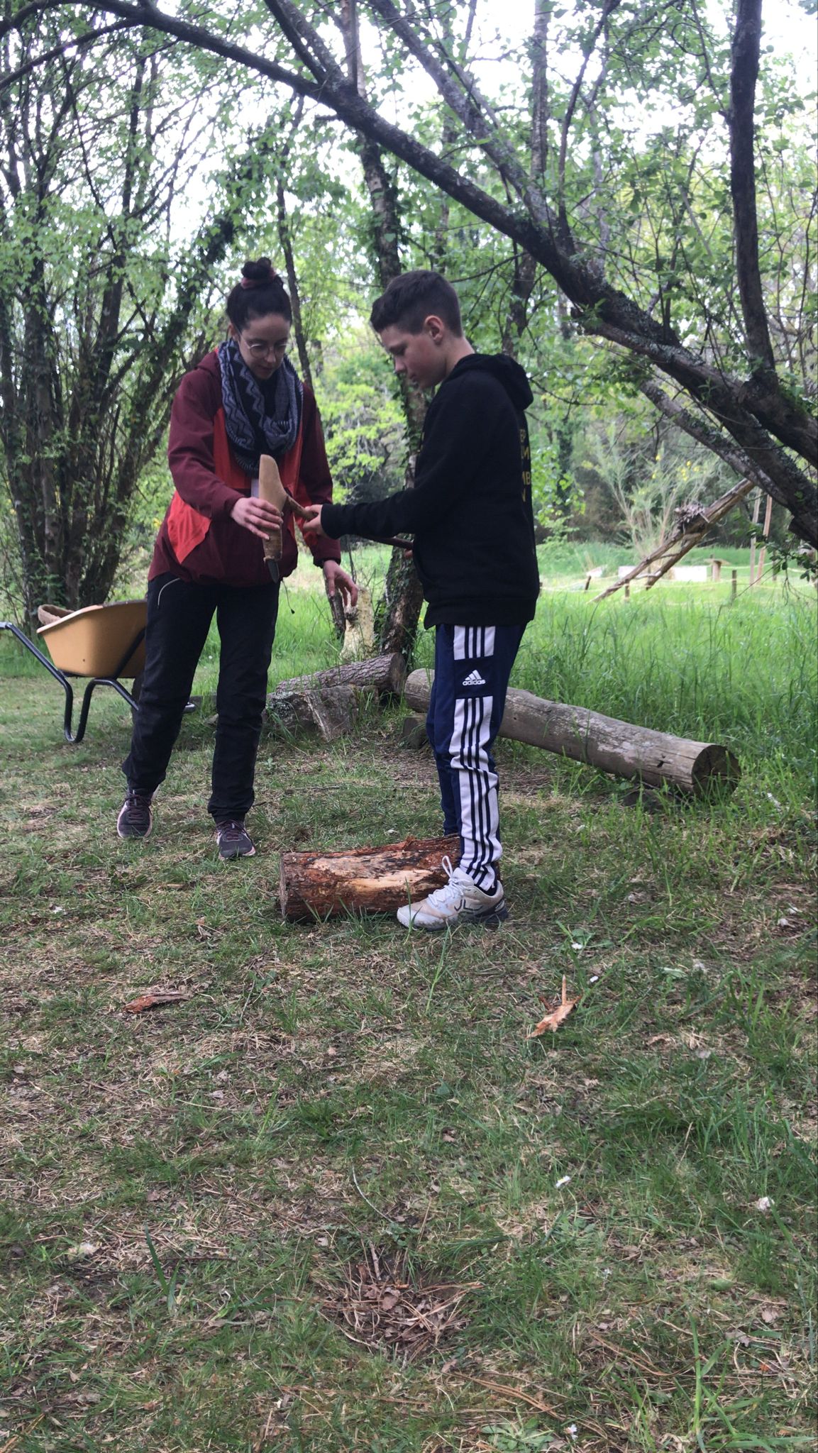* Technique de la herminette, outil permettant de retirer l’écorce des troncs d’arbres et de bêcher