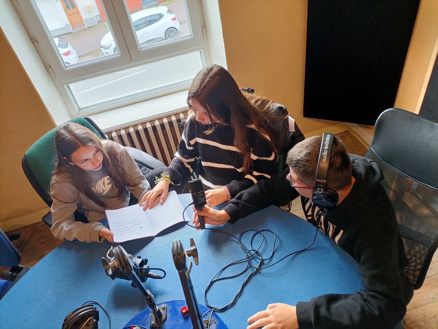 Atelier radio à Augan avec l’équipe de Timbre FM et interviews des libraires de la La Grange aux Livres. C’est le projet de l’année pour la classe de Troisième autour de la lecture.