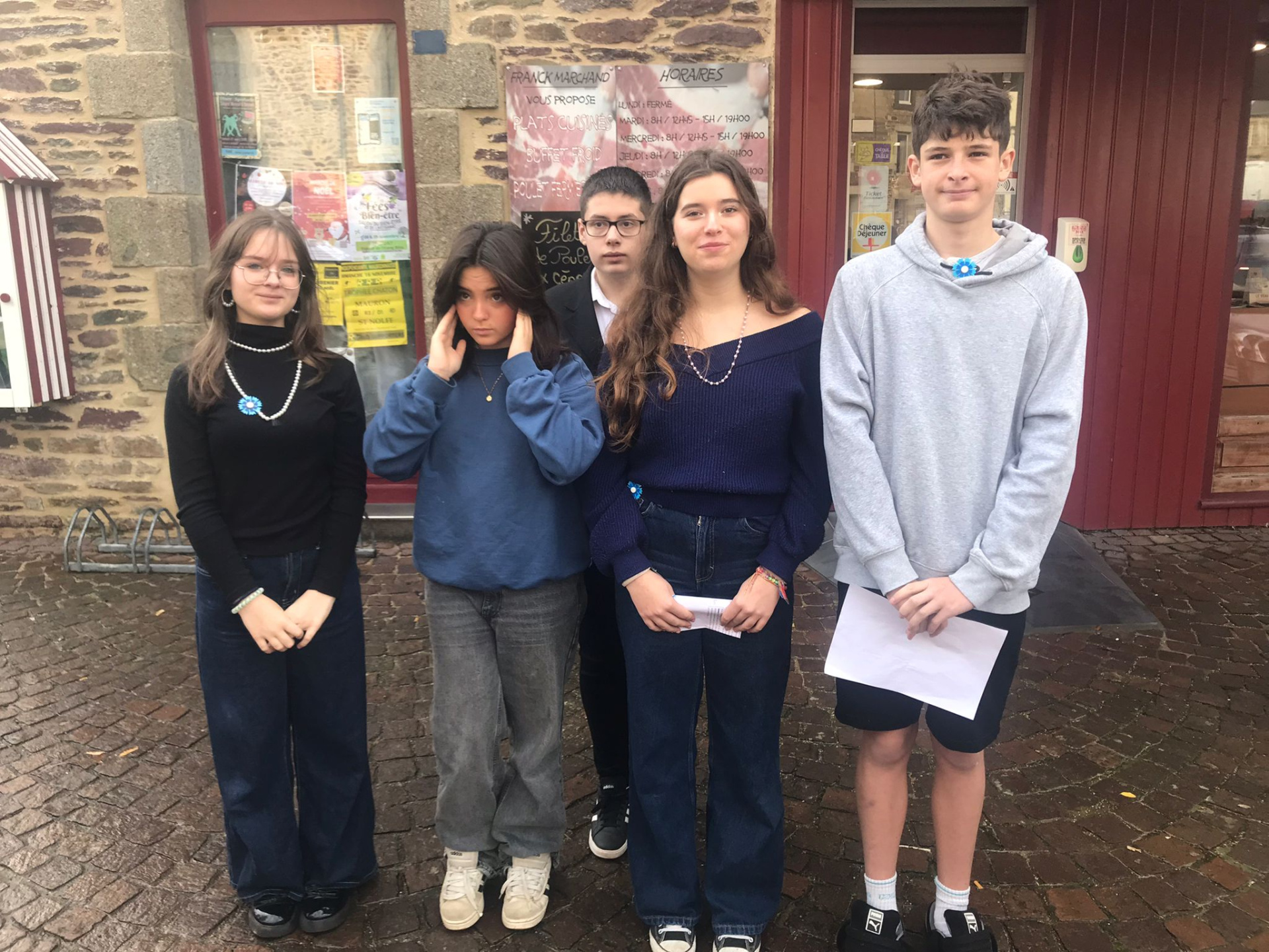 Le 11 novembre, six élèves de 3e ont représenté le collège lors de la cérémonie commémorative à Mauron. Ce moment de recueillement, empreint de respect et d’émotion, a permis de rendre hommage à celles et ceux qui ont donné leur vie pour la France.