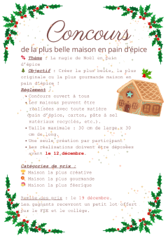🏠✨ LES RÉSULTATS DE NOTRE CONCOURS DE MAISONS DE PAIN D’EPICES ! ✨🏠 Un immense bravo à tous les participants pour leur talent et leur imagination ! Que ce soit en carton ou en pain d’épices, vous nous avez mis des étoiles plein les yeux. Voici nos trois grands gagnants :